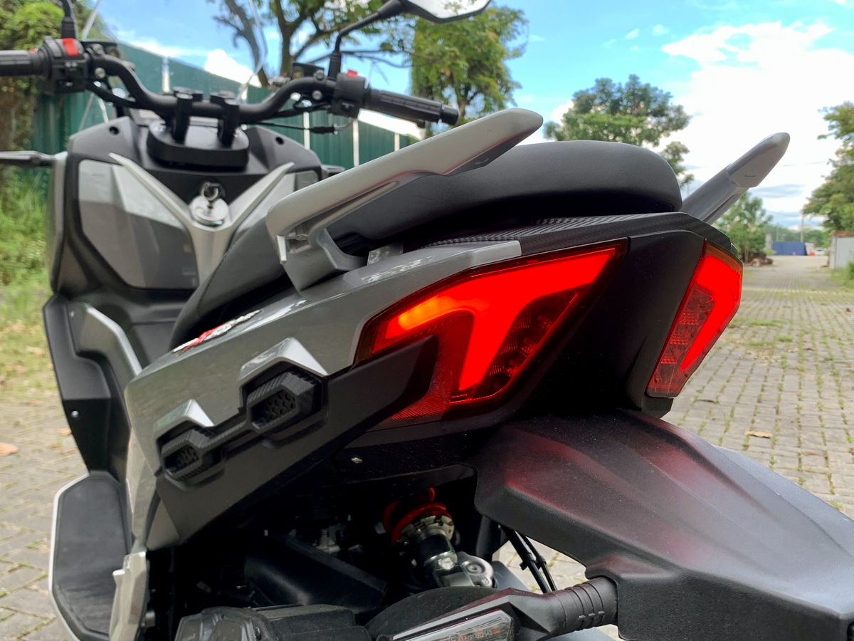 Tapi agak sayang kerana walaupun suspensi sudah cukup baik dengan rekabentuk unik, kekuatan pecutan skuter hanya pada peringkat awal dan terotel terpaksa dipulas penuh.