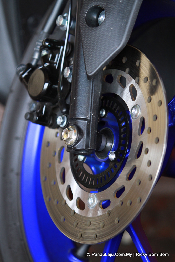 Walaupun mungkin ada peminat yang mencemuh brek dram pada roda belakang (kata mereka menjejaskan imej sporty), tetapi tugasan membrek memang tiada kompromi kerana brek cakera depan sudah siap dilengkapi sistem brek anti-kunci (ABS), sekali gus memberikan kuasa henti yang mencukupi, termasuk menjanjikan kestabilan ketika membrek dalam kelajuan tinggi.