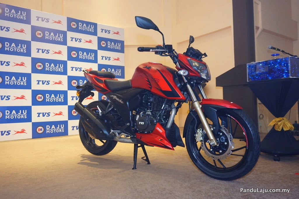 Untuk pasaran Malaysia, jenama itu dipasarkan menerusi Daju Motor Sdn Bhd yang terletak di Petaling Jaya, Selangor. Buat masa ini, TVS Apache RTR 200 4V akan dibawa dalam versi import (CBU) dari India sebelum disusuli model pemasangan tempatan (CKD).