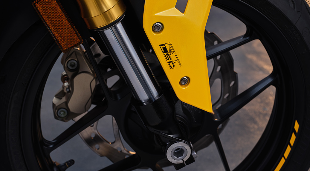 - Dijana enjin 4-lejang silinder tunggal 312.12cc penyejukan cecair dengan suntikan bahan api (FI), sama seperti Apache RR 3310 dengan output kuasa 35hp @ 9,700rpm dan tork 28.7Nm @ 6,650rpm, manakala kelajuan maksimum 150kmj.