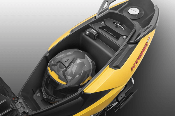 NTorq 150 ialah model skuter perdana yang bakal ditawarkan TVS. Jika NTorq 125 (gambar atas) ialah skuter sporty, si abang NTorq 150 pula lebih kepada skuter santai ergonomik dengan posisi kaki ke depan. Selain rekabentuk itu, NTorq 150 bakal didatangkan dengan palam pengecas telefon pintar dan penghidup tanpa kunci (keyless entry). Difahamkan juga, skuter tersebut akan menggunakan komponen NTorq 125 seperti pedal gear, spidometer dan bar hendal.