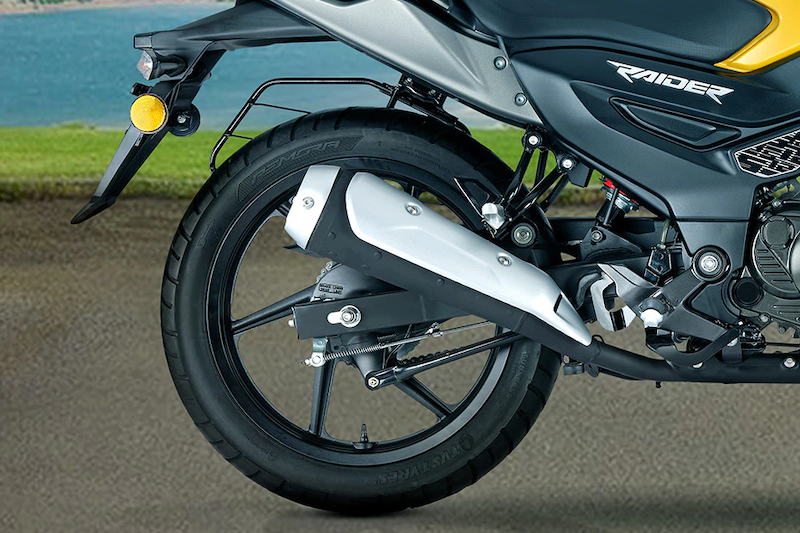 - Ada logo tiga dimensi (3D) TVS pada tangki minyak dengan logo Raider pada panel sisi motosikal. Kedua-dua varian berkongsi desain sama.