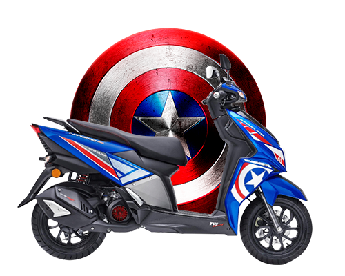 Produk khas untuk pasaran India itu adalah hasil kerjasama TVS Motor dengan bahagian perniagaan produk Disney India. Bagaimanapun, tiada maklumat mengapa seragam Iron Man tidak lagi ditawarkan. Setiap varian menampilkan seragam atau liveri khas mengikut skema adiwira popular Marvel.