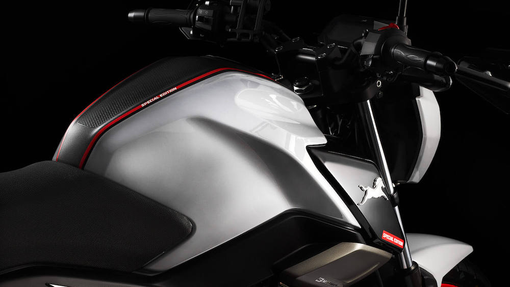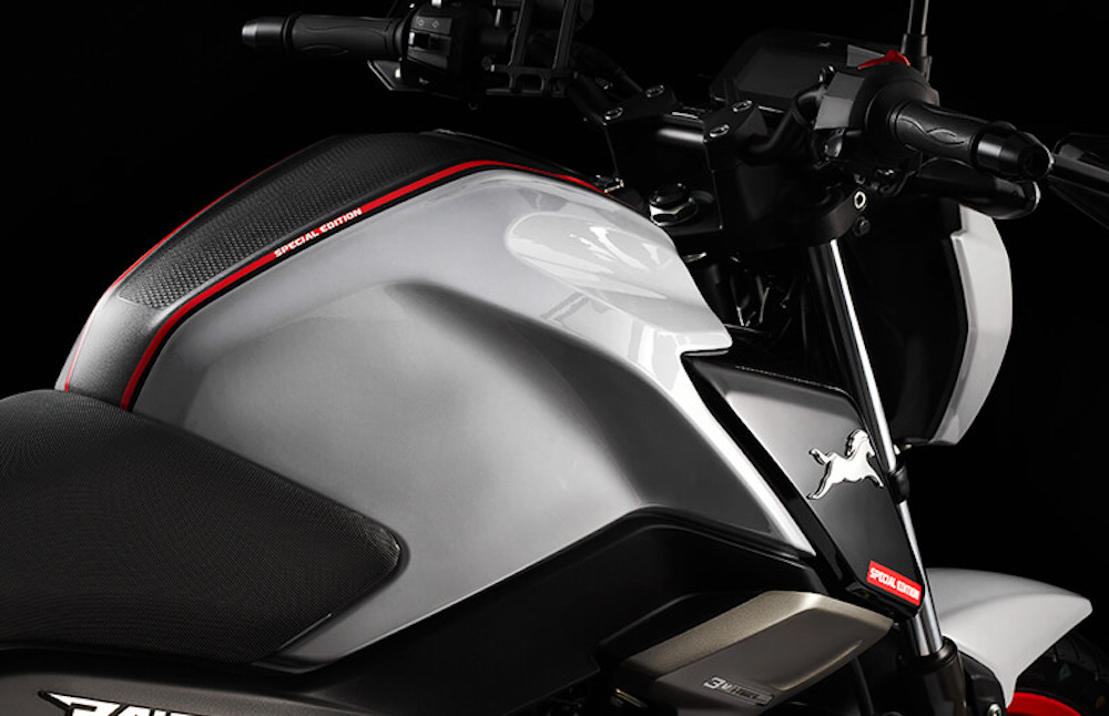 Naked bike ini menampilkan warna California Grey dalam tona warna kelabu dengan rim merah.