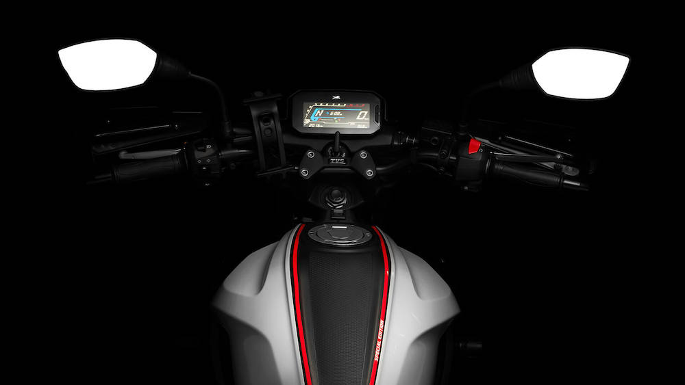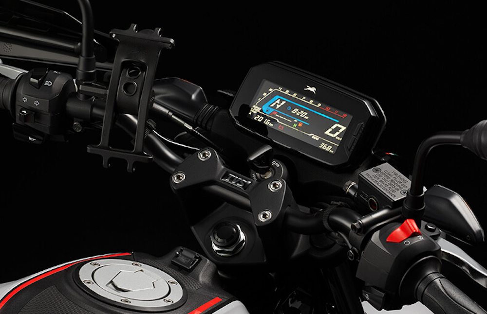 Antara ciri standard diberikan ialah lampu LED penuh, pengecas USB, panel meter TFT dengan konektiviti Bluetooth berserta paparan spidometer, odometer, takometer, meter trip, bar petrol, dan indikator posisi gear.