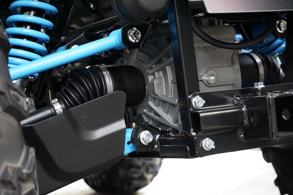 - Dijana enjin petrol 4-lejang silinder tunggal 570cc DOHC berkuasa 44hp dan tork 48Nm. Sistem transmisi automotif CVT.