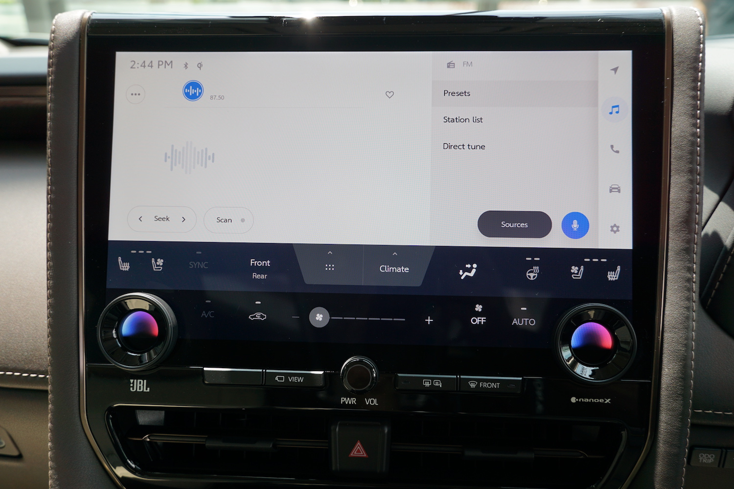 - Tambahan lain Alphard ialah alat kawalan seperti telefon pintar untuk mengubah tetapan sistem bunyi, penyaman udara dan sistem pengudaraan. Alphard juga dilengkapi NanoeX ionizer sebagai sebahagian sistem pengudaraan.