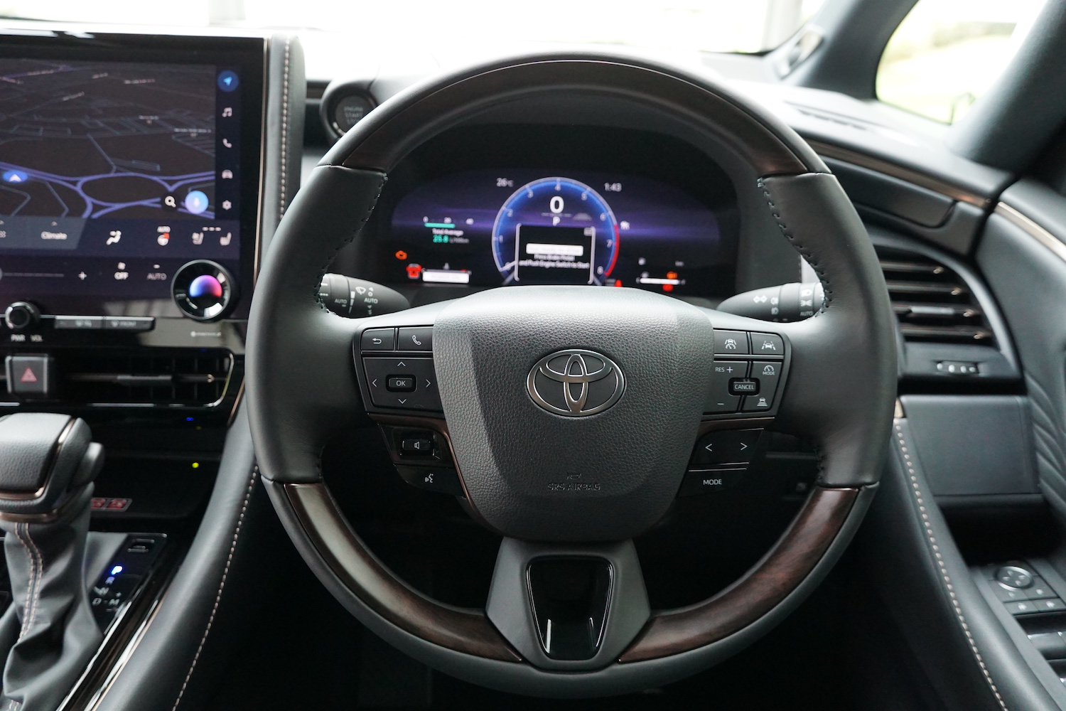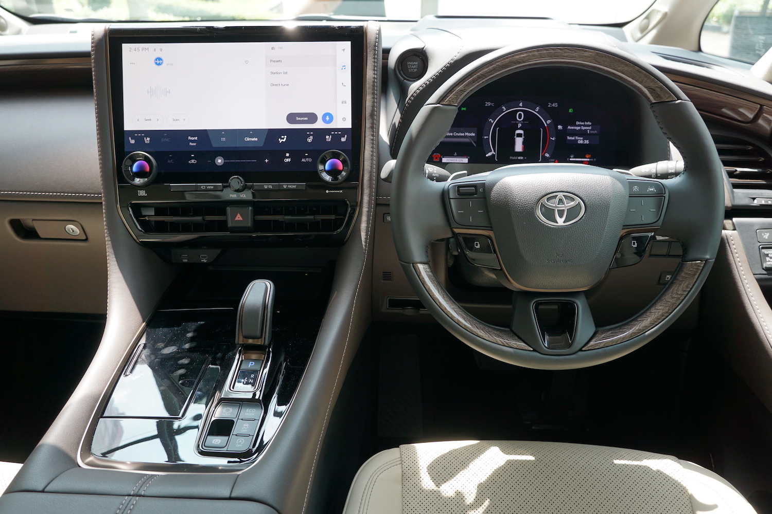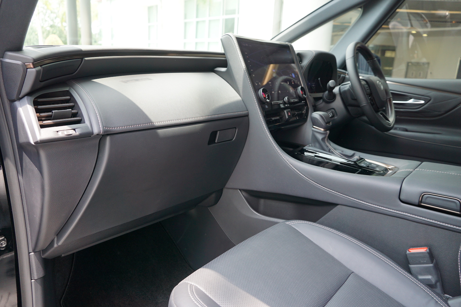 - Alphard menerima kemasan Uzuramoku menerusi penggunaan paten urat kayu unik pada panel instrumen, roda stereng dan kawasan sekeliling pembesar suara.