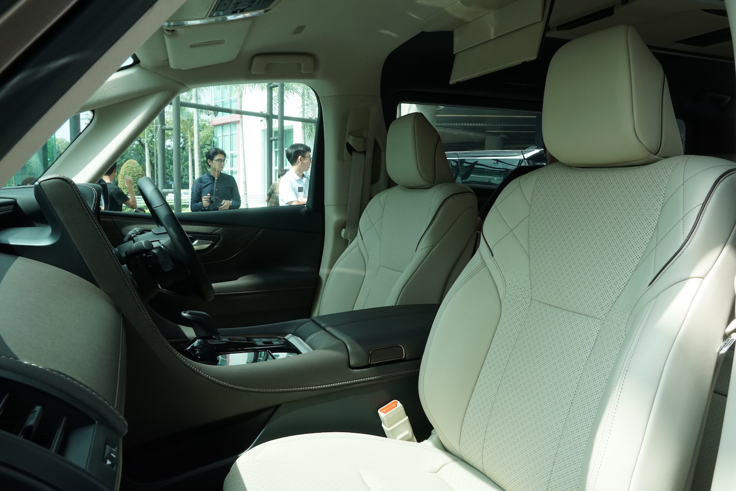 - Kerusi Alphard menerima balutan upholsteri kulit tulen premium Nappa. Tempat duduk jenis VIP dengan fungsi Power Recline, Relax Mode dan Ottoman. Juga ada tambahan fungsi kerusi urut, pemanas kerusi dengan pengudaraan di bahagian perehat tangan dan Ottoman.