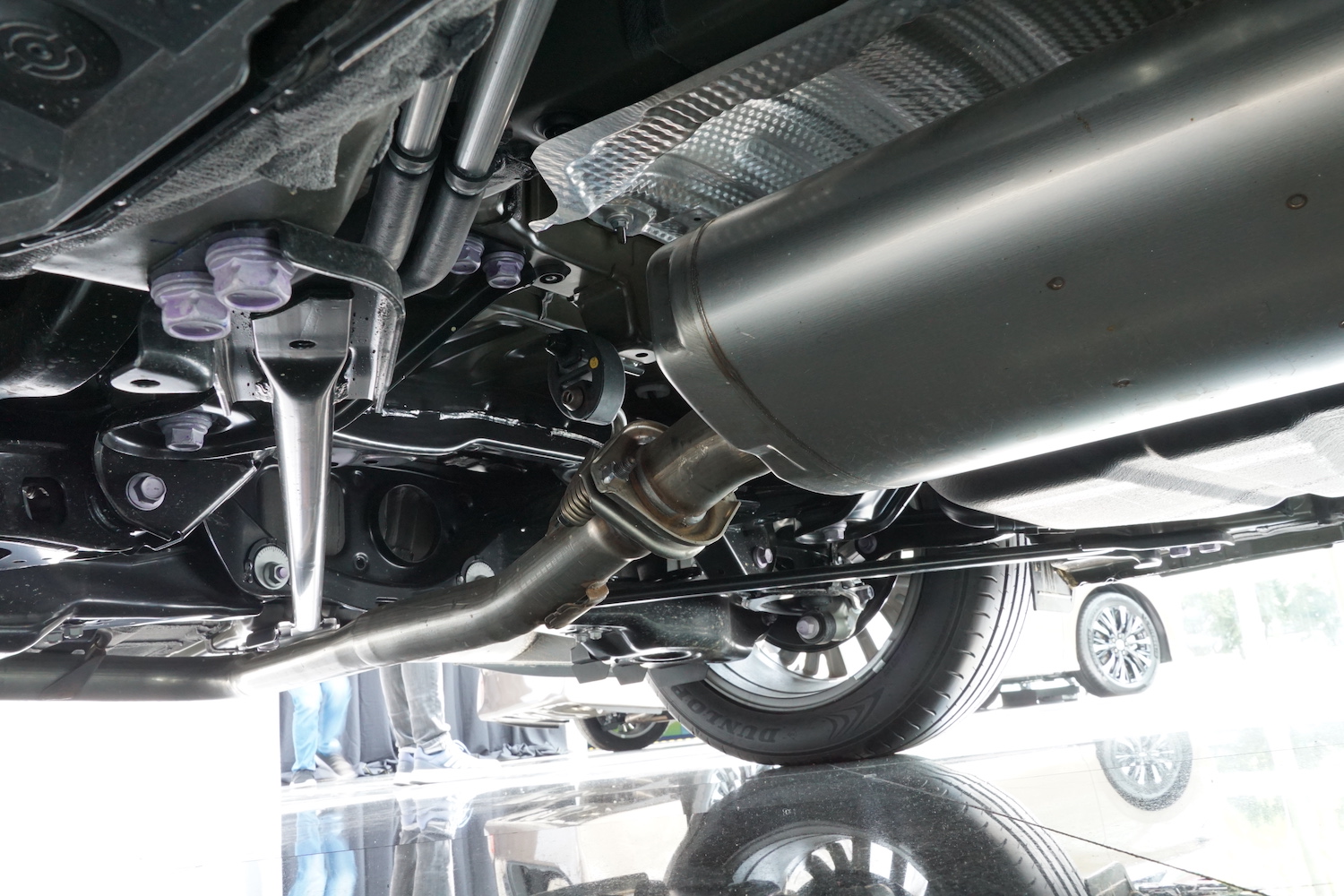 - Menggunakan suspensi strut MacPherson (depan), dan double-wishbone di belakang.