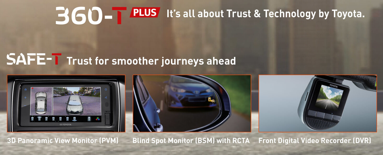 Tidak dilupakan ciri Safe-T seperti Monitor Papar Panoramik (PVM) 3D, Pemantau Titik Buta (BSM) dengan Amaran Trafik Lintas Belakang (RCTA) dan perakam video digital (DVR) depan. Ini termasuk teknologi Connectivi-T, terdiri daripada unit infotainment dengan konektiviti telefon pintar Apple CarPlay dan Android Auto, pengecas wayarles dan sistem telematik kenderaan (VTS).