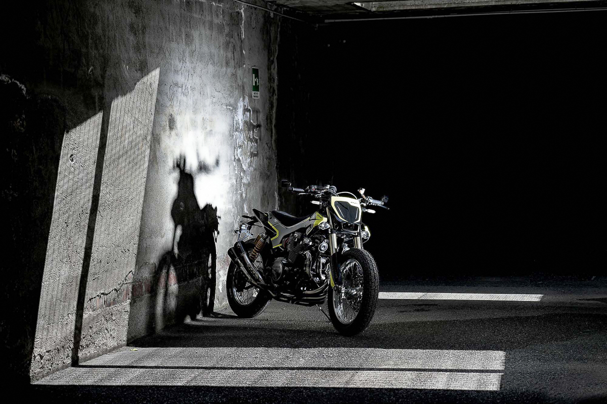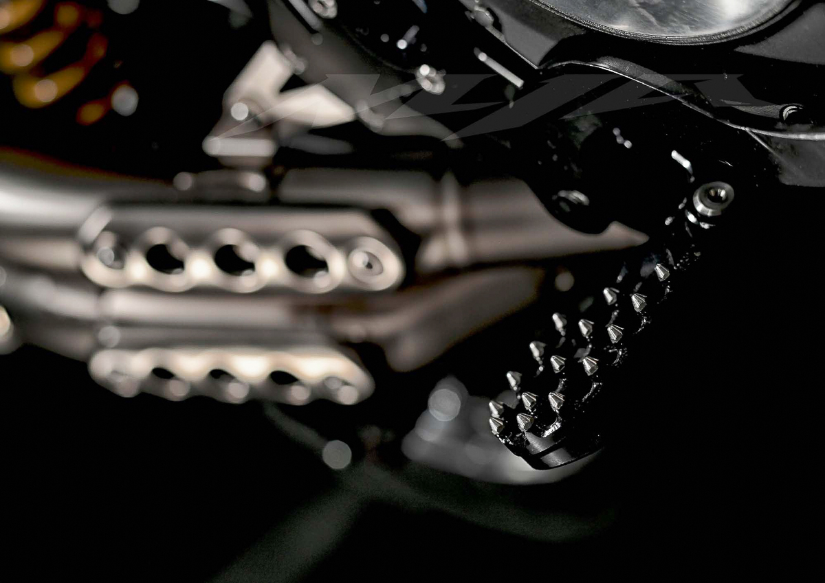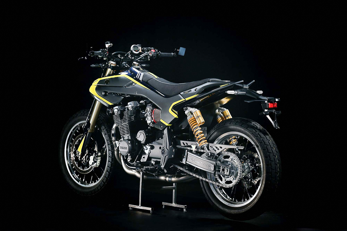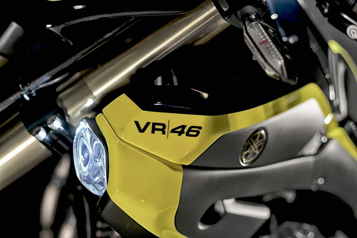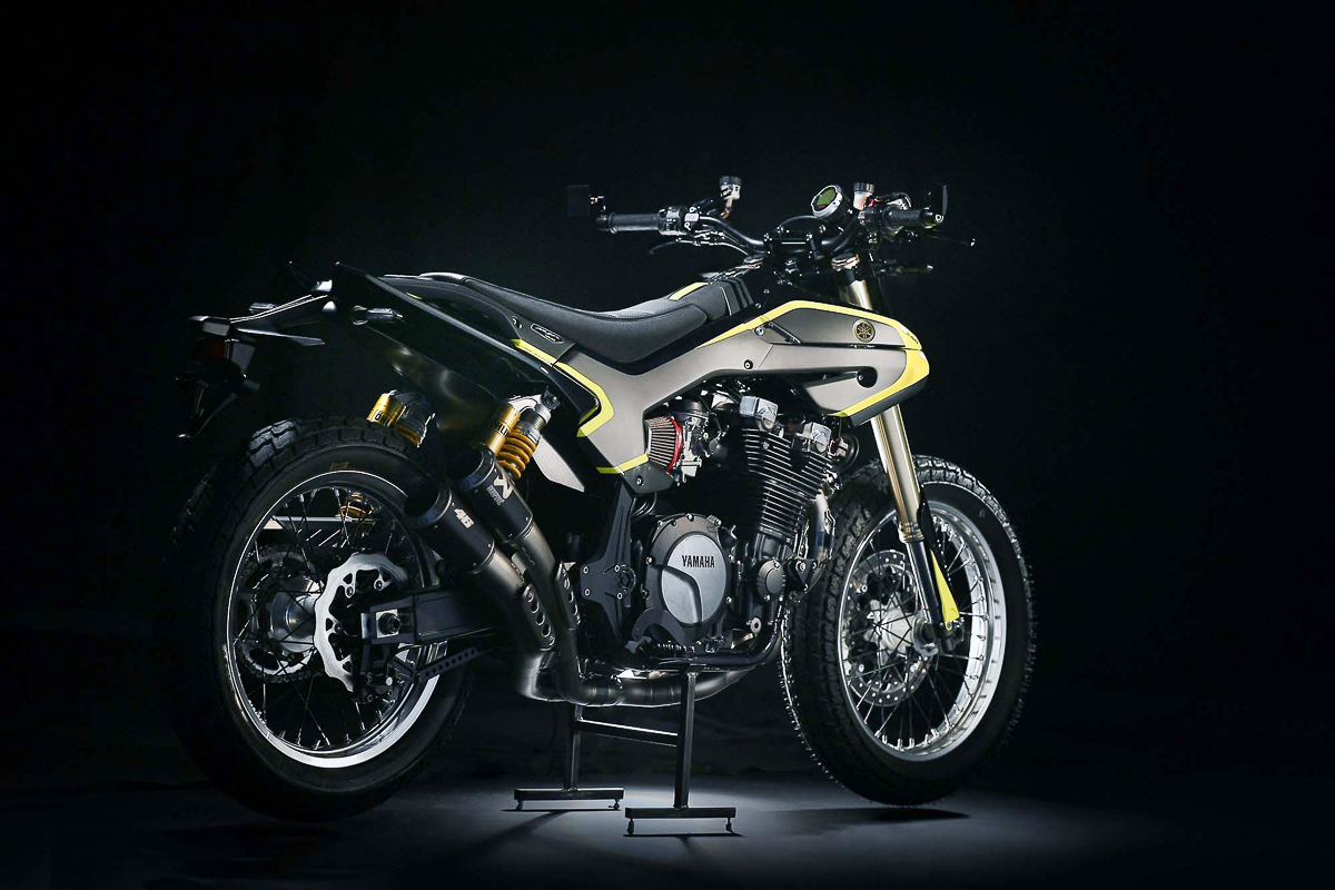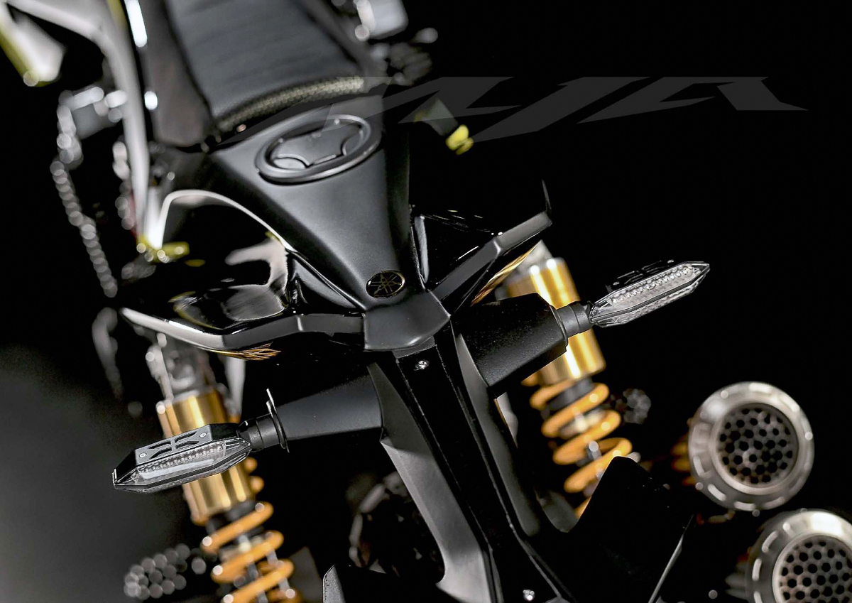 Lampu utama dibuang, tetapi komponen pencahayaan masih dipakai dengan menggunakan sepasang unit projektor LED milik R1 yang dimuatkan antara fork depan. Termasuk ekzos 4-2-1-2 Akrapovic, desain tangki minyak, rim 19-inci dan tayar khas mengikut paten motosikal lumba flat tracker Yamaha TZ750.