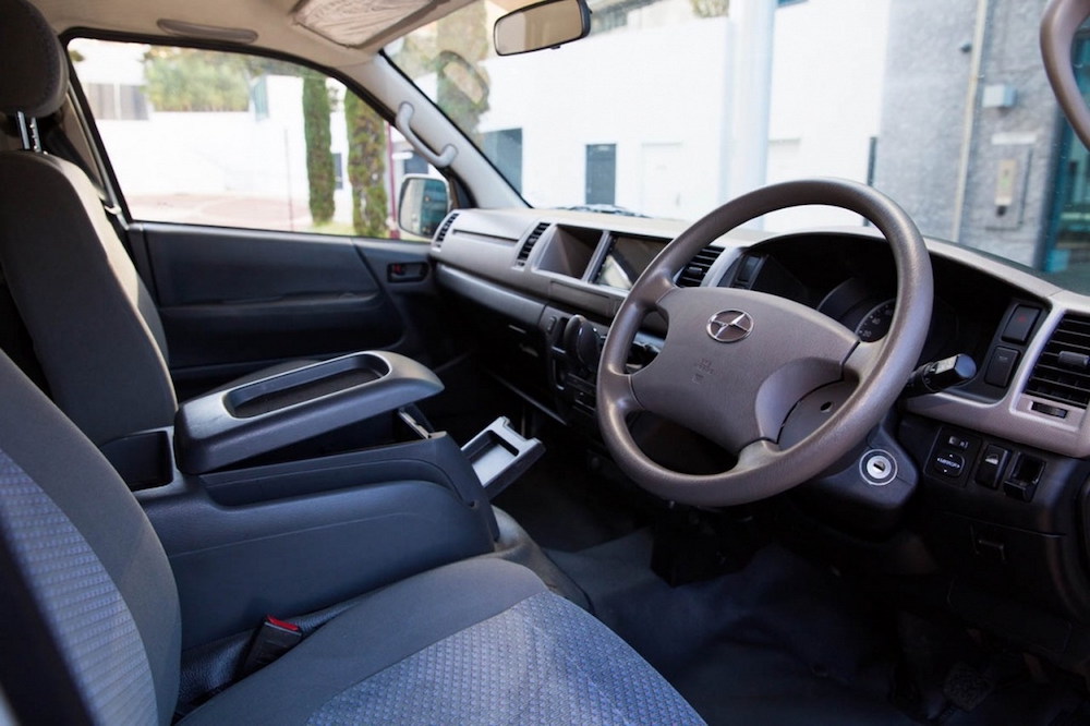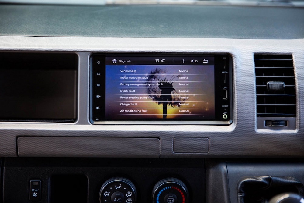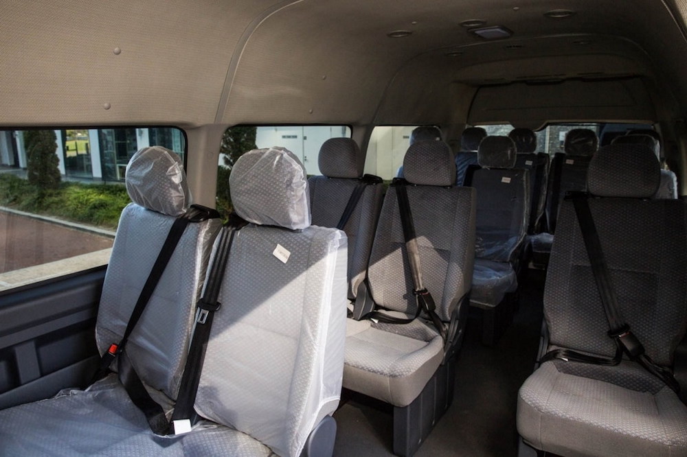 - Ruang dalaman menyamai HiAce, dilengkapi peralatan standard termasuk satu skrin infotainmen kecil jenis sesentuh, kamera undur dan pendingin hawa berasingan untuk penumpang depan serta belakang.