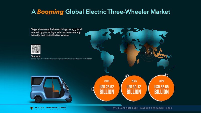 Menurut syarikat itu, pasaran untuk kenderaan elektrik roda tiga menjelang tahun 2025 dianggarkan bernilai AS$30.12 bilion (RM126 bilion). Nilai itu dijangka terus meningkat kepada AS$32.65 bilion (RM135 bilion) pada 2027.
