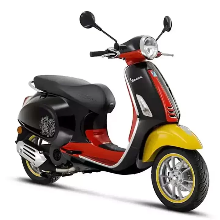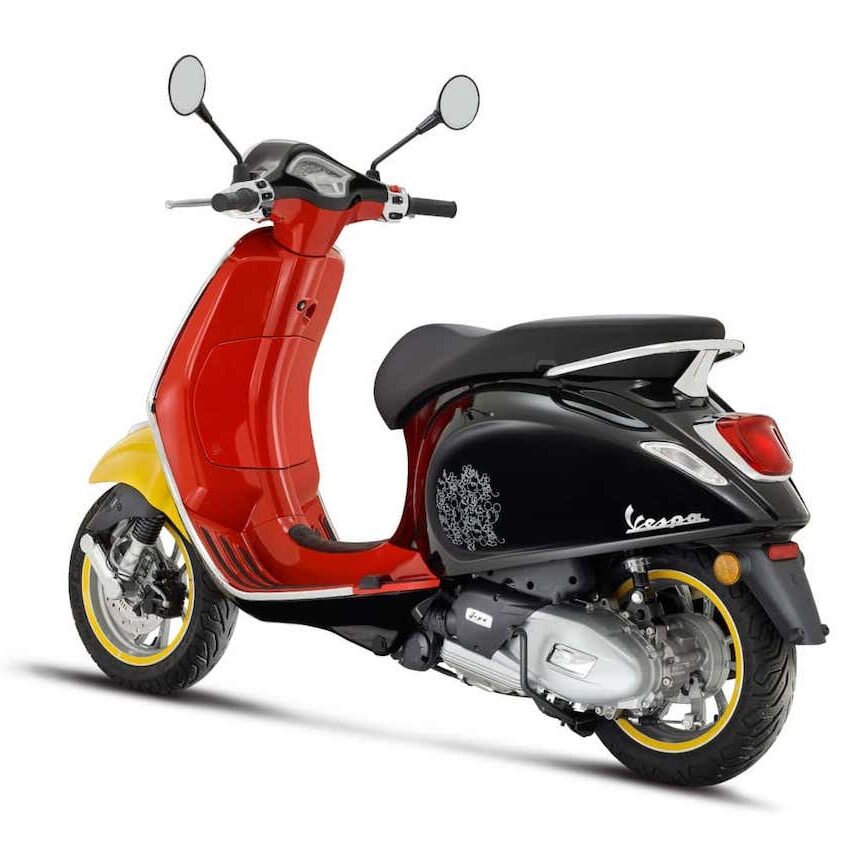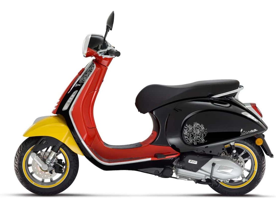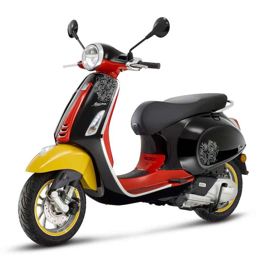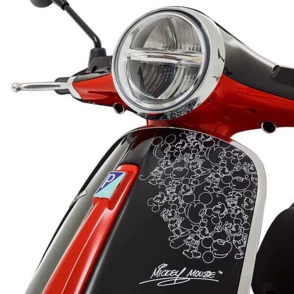 Vespa Disney Mickey Mouse Edition (2023) didatangkan dalam skema warna mirip pakaian watak kartun Mickey Mouse, iaitu merah, hitam dan kuning.