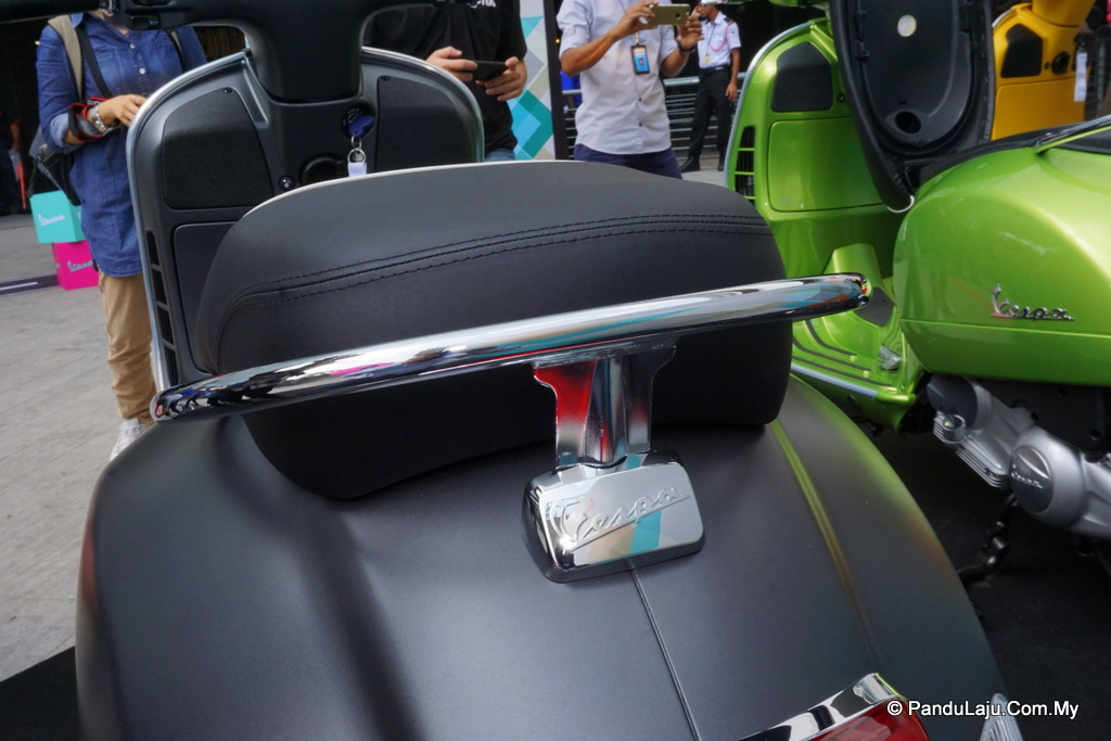 Pembeli juga boleh memilih ciri eksklusif seperti sistem operasi remote elektrik pada pelana, sistem anti-kecurian ‘bike finder’, skrin papan pemuka LCD dan port USB. Melengkapkan lagi ciri keselamatan, Vespa membekalkan sistem immobiliser sebagai standard.
