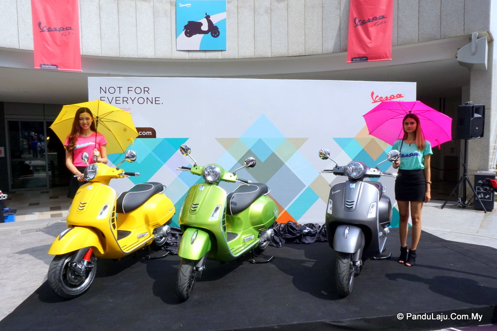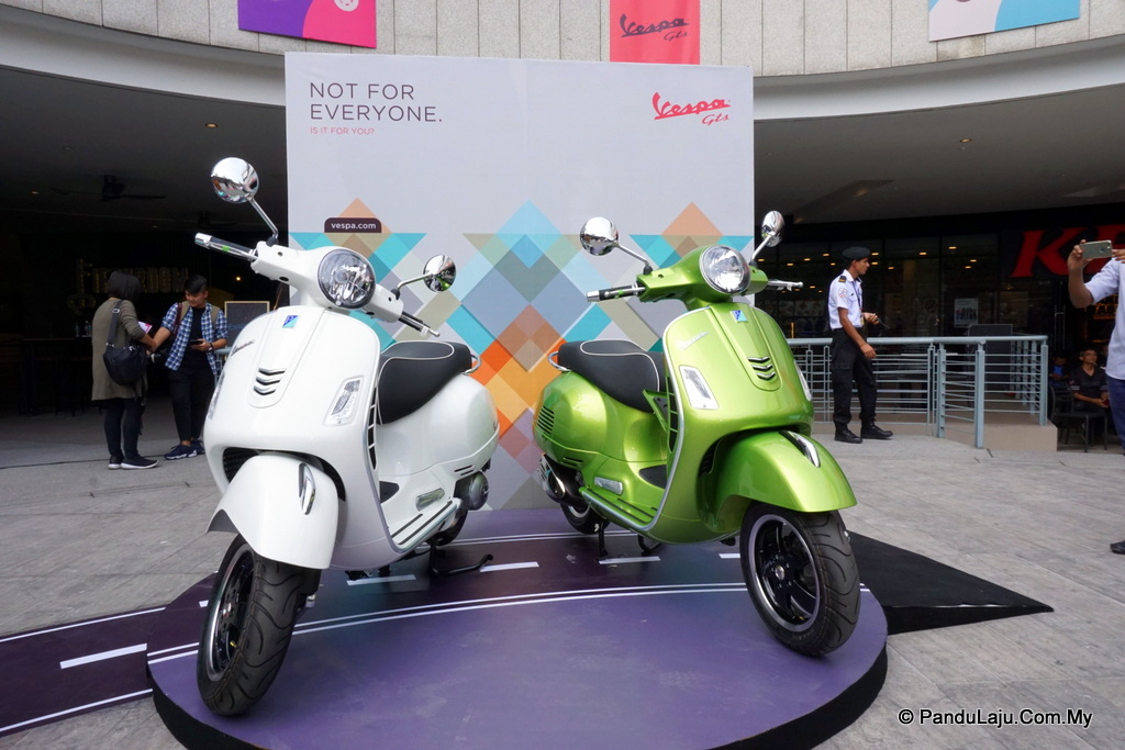 Vespa GTS Super 300 dijual pada harga RM28, 202.50 (termasuk insurans dan GST) dengan empat pilihan warna menarik: putih, hijau, hitam dan kuning.