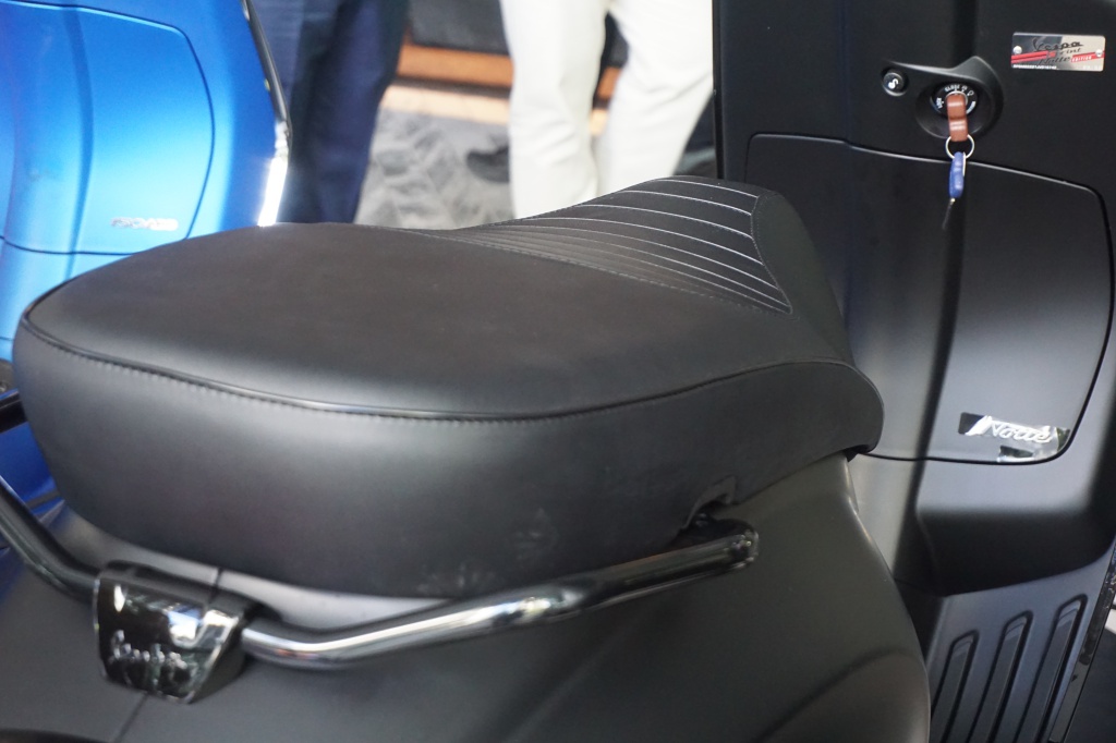 Selain itu, Vespa Notte didatangkan kemasan terperinci, termasuk pemasangan lencana Notte pada kotak belakang bersama kemasan sulaman berganda pada pelana.