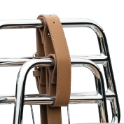 - Dipasangkan rak depan dan belakang, siap dengan tali jerut kulit coklat untuk mengikat beg.