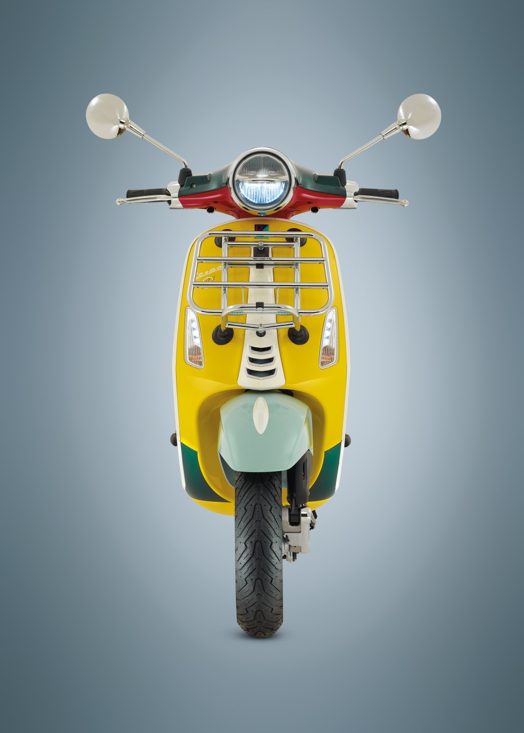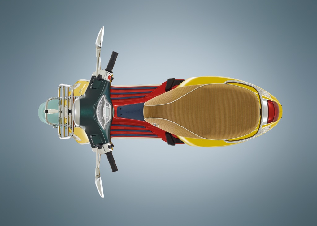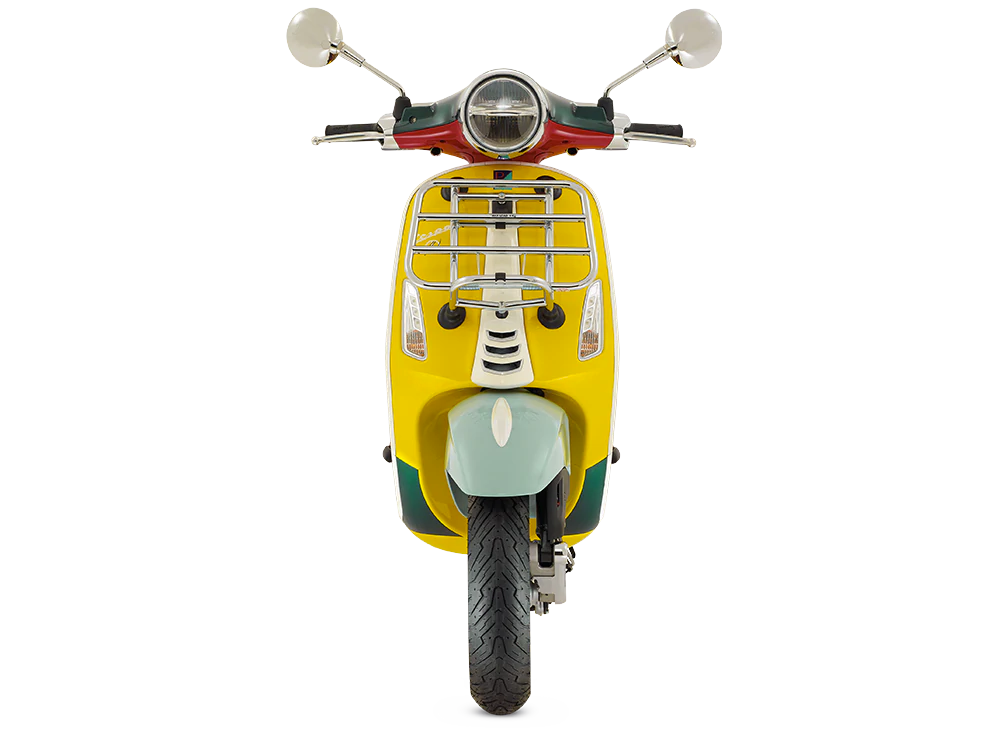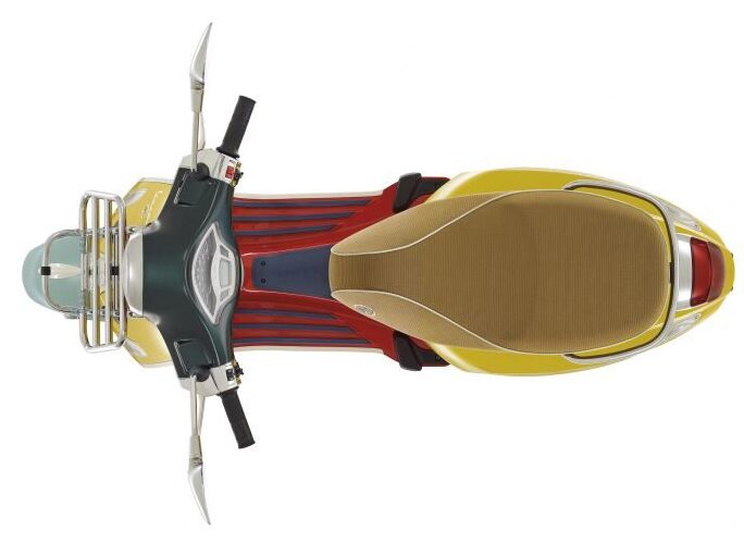 Kemasan putih diletakkan di bahagian tali leher (tie) depan, frem sisi sebagai sebahagian siluet dan rim dengan logo Vespa. Kemudian disempurnakan dengan kemasan krom pada perumah lampu depan, rak barang, bar hendal pembonceng dan pelindung silenser.
