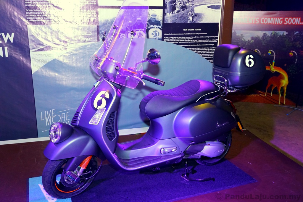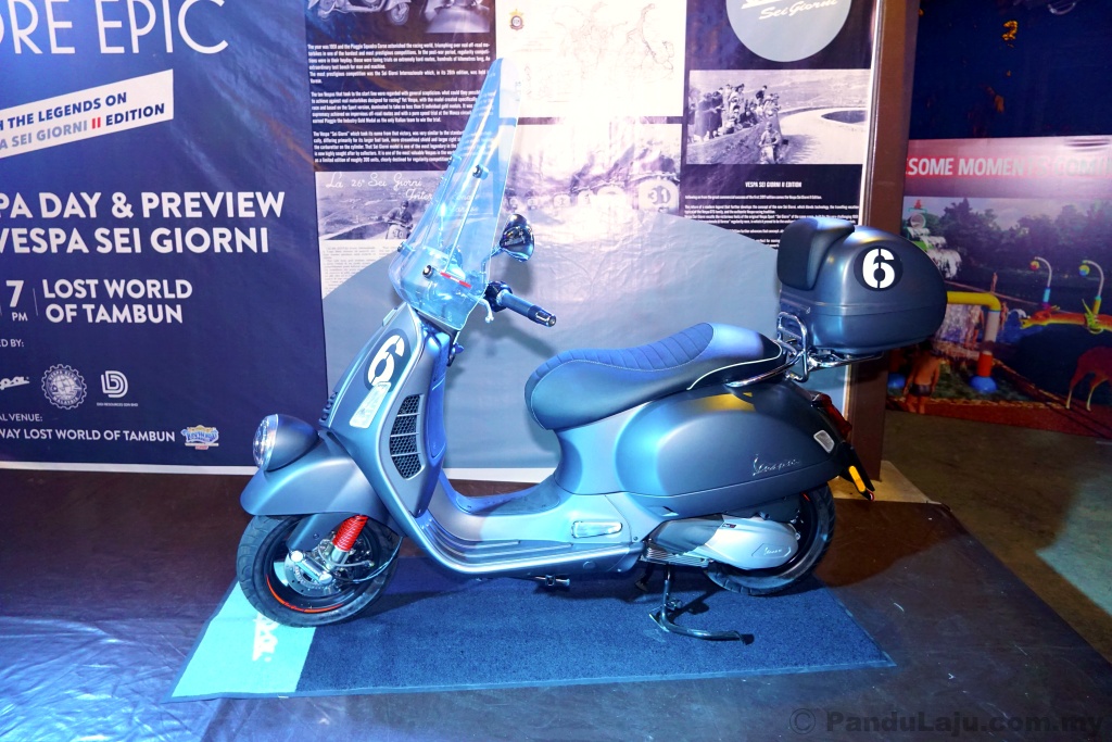 PENGEDAR rasmi motosikal Piaggio di Malaysia, Didi Resources Sdn Bhd melancarkan Vespa Sei Giorni II (2020) pada harga RM34,500 (tidak termasuk insurans dan cukai jalan) dalam pilihan warna baharu Grey Titanio.