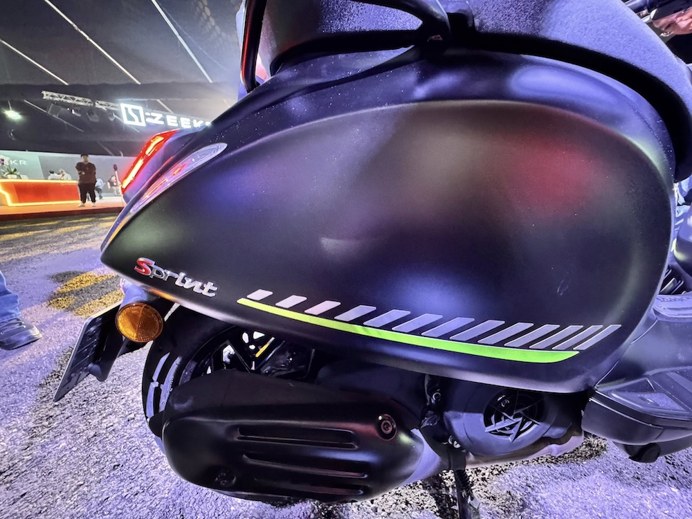 Vespa Sprint Tech 2025 menampilkan semangat moden dan unik dengan padanan warna baharu seperti black (hitam), warm grey (kelabu) and fluo-green (hijau fluo). Lampu sisi baharu pada panel fairing depan menyerlahkan penampilan skuter, terutama apabila fungsi Bike Finder atau enjin dihidupkan.