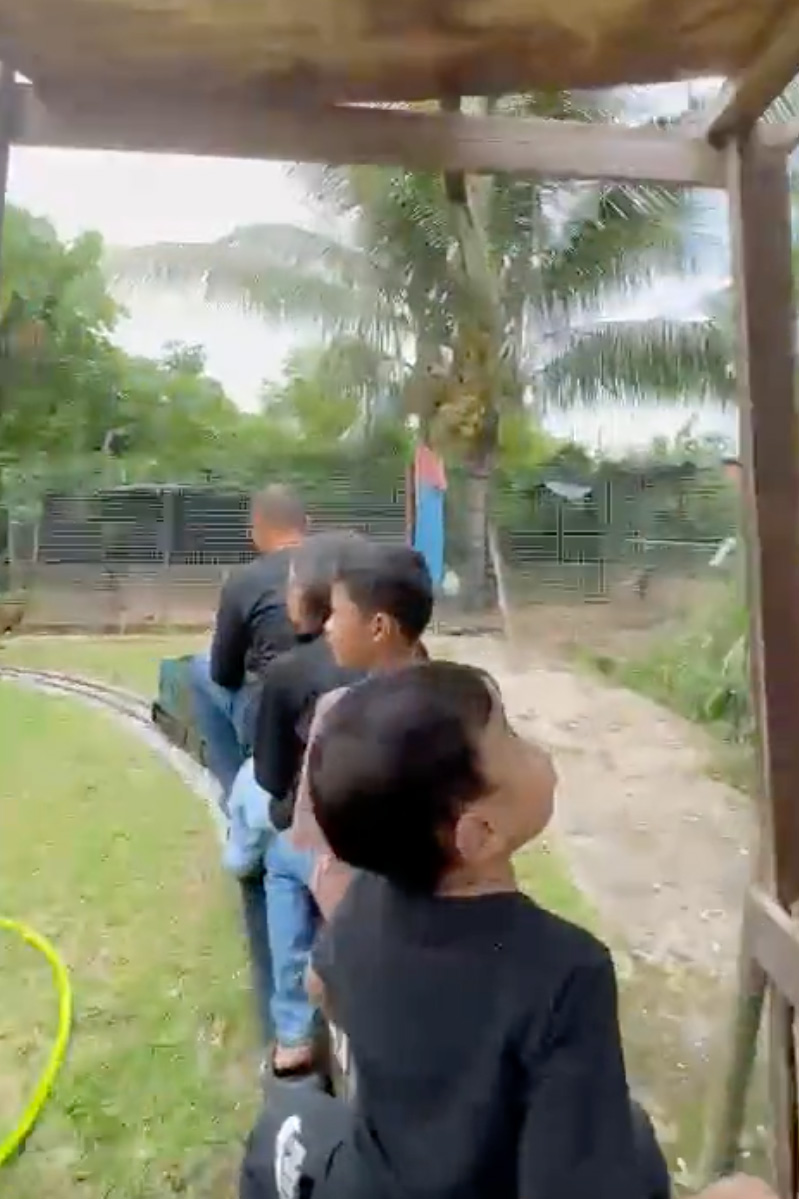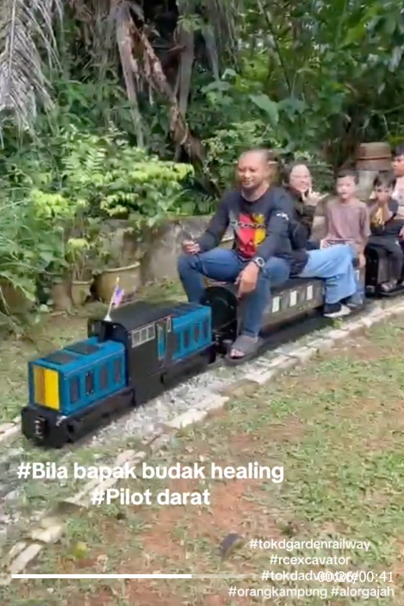 Video itu, yang dikongsikan dalam TikTok @lisaamanda40, menunjukkan seorang lelaki, yang dikatakan datuk saudara kepada empat kanak-kanak di belakangnya sedang ‘healing’ menaiki kereta api mini mengelilingi kawasan rumah.
