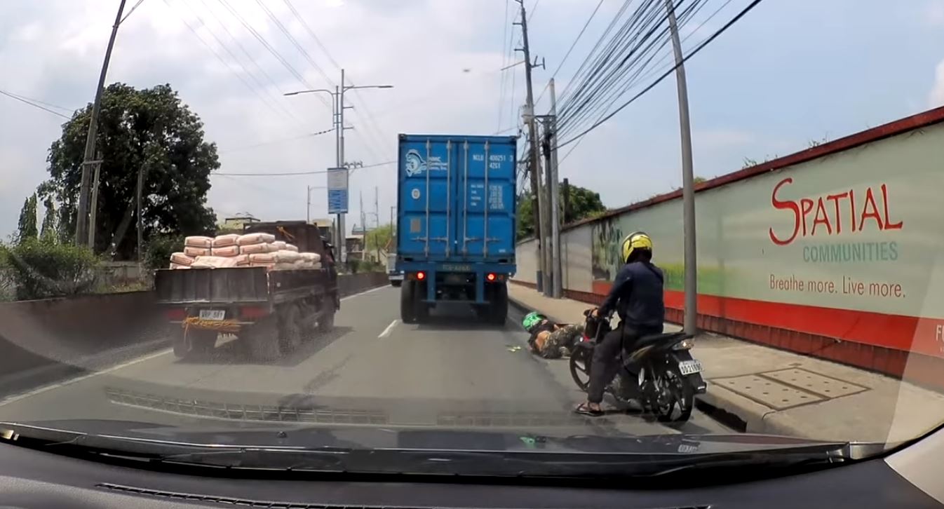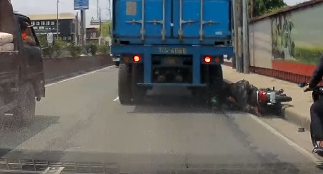 Video menunjukkan seorang penunggang motosikal cuba menyelit ke sebelah kanan lori, dan tiba-tiba hilang keseimbangan lalu terjatuh sebelum digilis tayar belakang kenderaan berat itu, betul-betul pada bahagian kepala mangsa. Bukan lori kosong atau kepala lori, tetapi siap bawa kontena OK!
