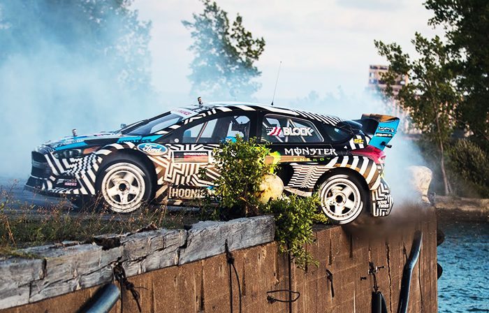 Antara aksi Ken Block paling menakjubkan ialah melintasi hadapan kereta api yang sedang bergerak, aksi donat di dermaga dengan tayar betul-betul berada di pinggir tebing bersebelahan laut, dan mengelilingi sebuah kereta yang digantung helikopter.