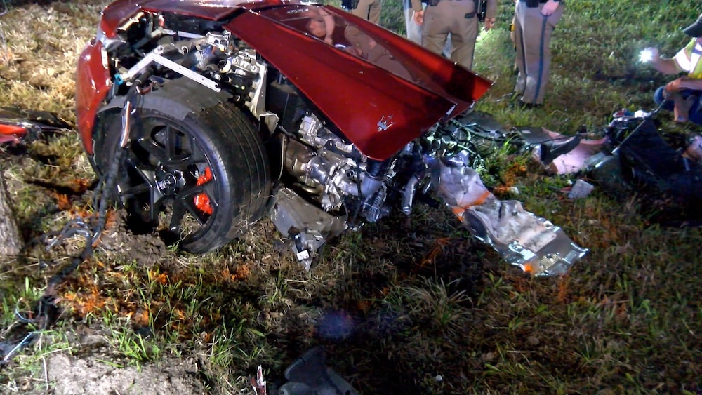 Tiada penjelasan diberi bagaimana pemandu MC20 itu hilang kawalan tetapi menurut Montgomery County Police Reporter, laporan polis berpendapat kenderaan itu dipandu melebihi 161kmj.