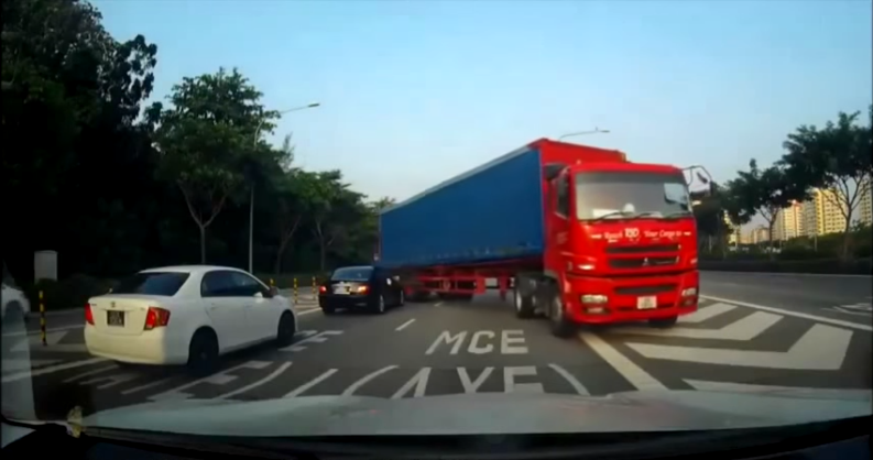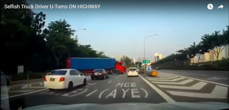 Lihatlah rakaman video di bawah ini, seorang pemandu lori di Singapura dikesan cuba melakukan pusingan U di tengah laluan lebuh raya yang sibuk. Aksi berbahaya itu sempat dirakam kamera pemuka (dashcam) milik seorang pemandu yang dimuat naik ke laman YouTube beberapa minggu lalu.