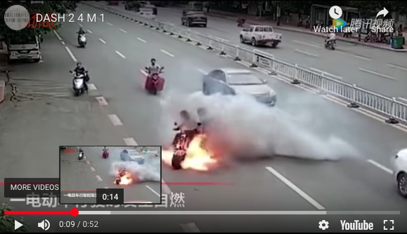 APA sudah jadi? Sebuah motosikal elektrik dirakamkan terbakar tiba-tiba ketika sedang ditunggang. Tidak diketahui di manakah lokasi kejadian berlaku. Mungkinkah di China atau Taiwan? Siapa ada maklumat bolehlah maklumkan dalam ruangan komen di bawah.