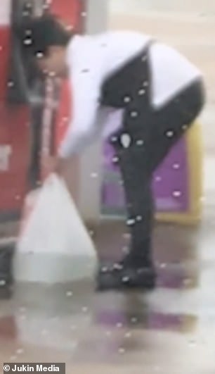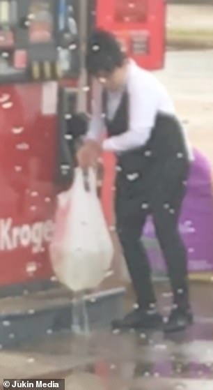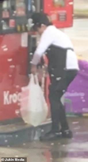 Kejadian itu disaksikan dan dirakam seorang pelanggan lain yang berada di stesen minyak Kroger di Houston dalam negeri Texas, Amerika Syarikat baru-baru ini.