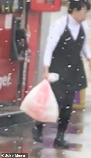 Tanpa membuang masa, wanita itu meletakkan bungkusan petrol atas lantai lalu diikat untuk mengelakkan lebih banyak petrol tumpah. Dia kemudian membuka but kereta untuk mengambil satu lagi beg plastik besar, dan bungkusan petrol yang bocor itu dimasukkan ke dalam beg plastik kedua berkenaan.