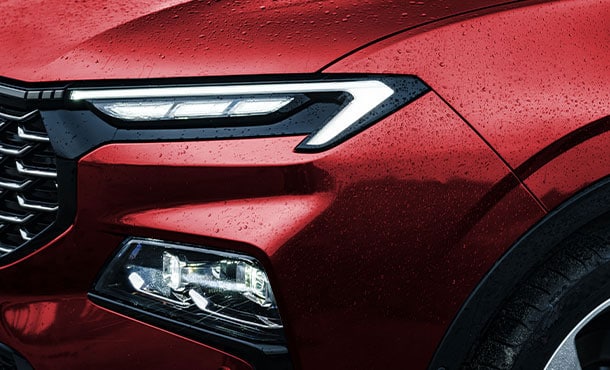 SUV kompak itu tampil dengan rekabentuk agresif dan maskular yang dapat dilihat pada gril dengan kemasan krom, lampu utama LED unit yang diposisi pada sudut bampar dan lampu siang yang disusun sebaris bonet, juga dengan rekaan unik seperti kening.