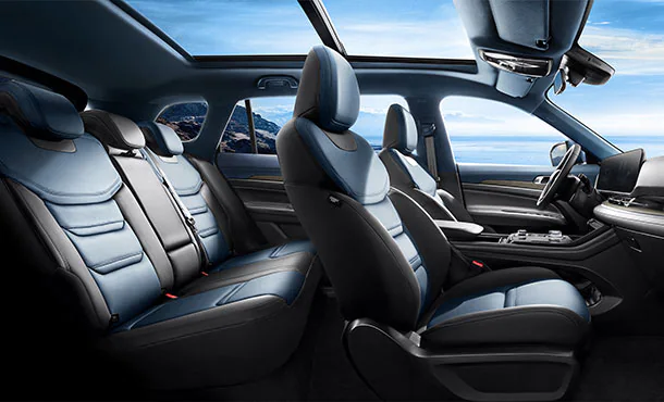 - Kerusi pemandu dan penumpang btampak mewah dengan material kulit lembut dan berlubang. Bumbung suria turut diberikan.