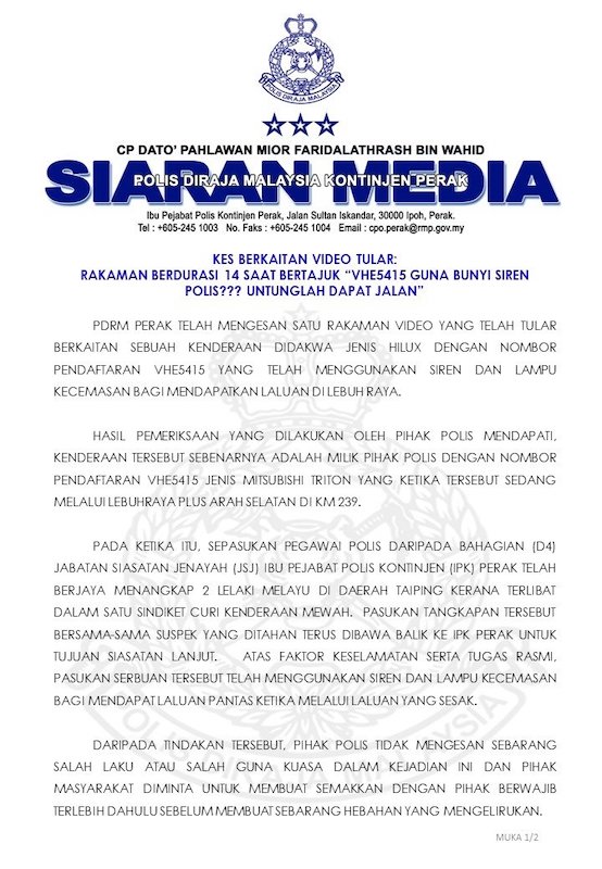 SUMBER: Polis Perak | Viral Perak