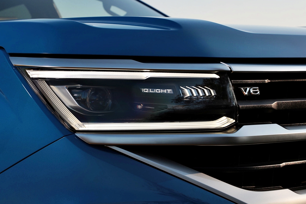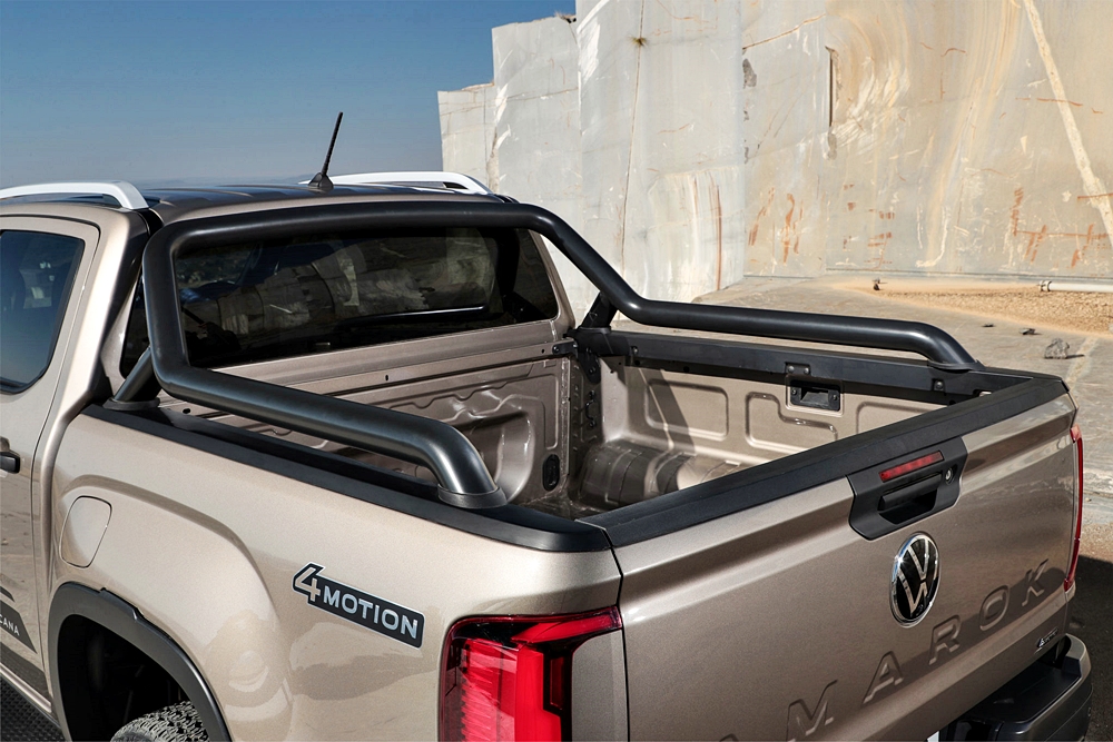 - Bahagian atas gerbang roda dibuat melintang yang menjadi identiti Amarok sejak generasi pertama.