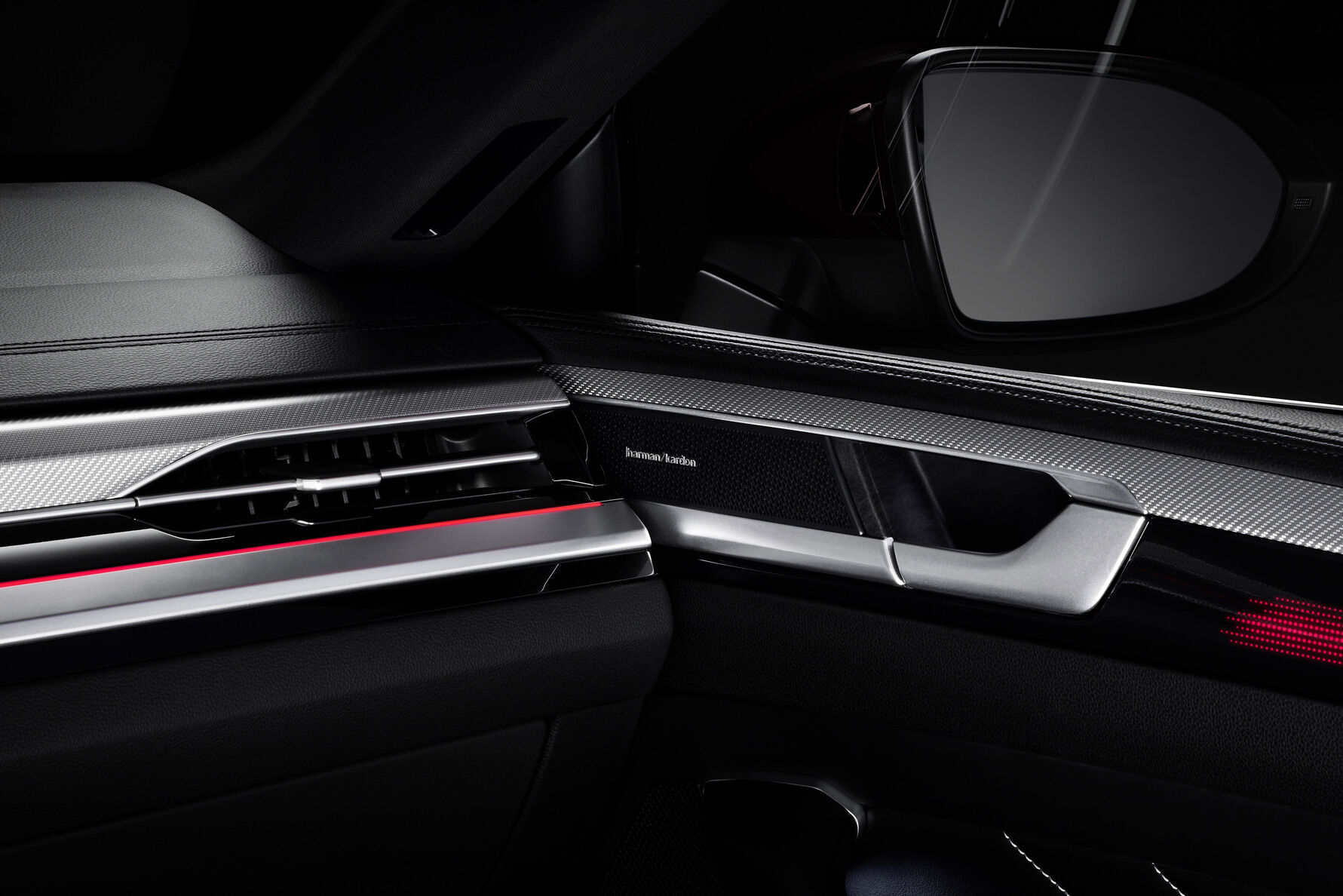 - Ruang kabin menghidangkan unit stereng baharu dengan kawalan sentuhan haptik, kerusi sport kulit Nappa Carbon dengan logo R baharu dan sistem audio 12 pembesar suara premium buatan Harman Kardon.