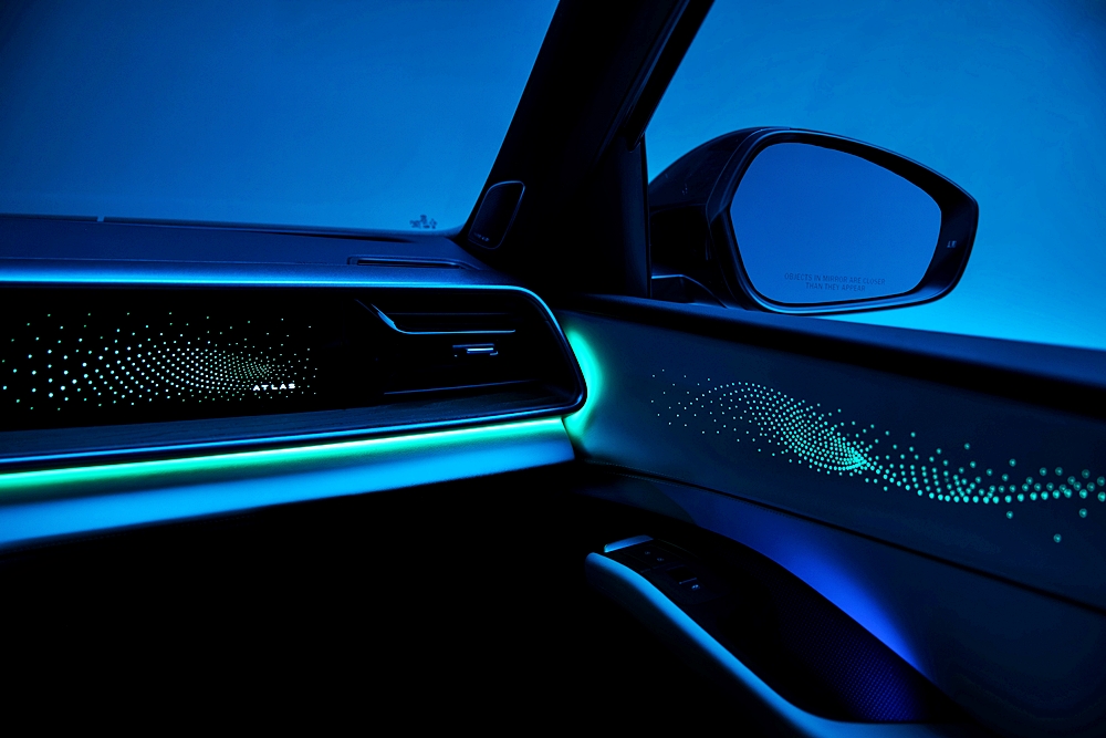 - Pencahayaan Ambien: Sistem 10 warna ialah standard, manakala varian atas menerima 30 pilihan warna.