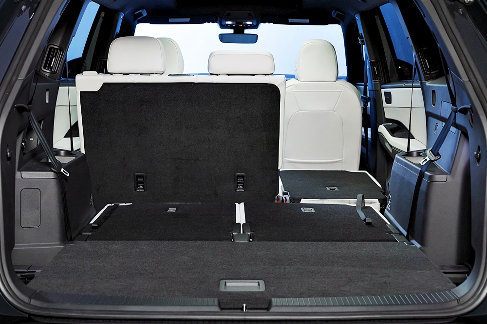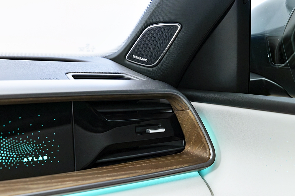 - Profil Sisi: Bahagian sisi kini kelihatan lebih tegap dengan permukaan yang lebih kemas serta garisan badan yang tajam. Atlas 2027 turut menawarkan hendal pintu bercahaya dan lampu suluhan (puddle lamps) dengan pancaran corak yang unik.