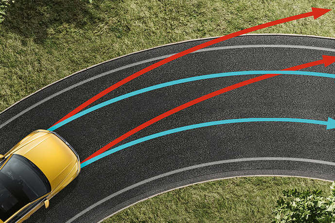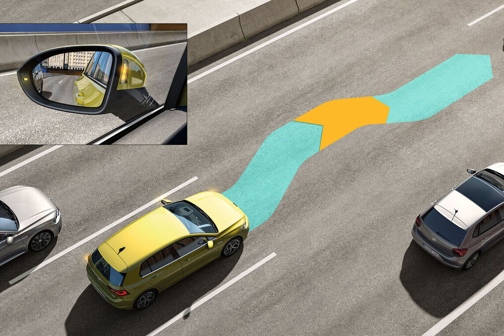 Sistem Bantuan Lorong (Lane Assist) menggunakan sensor kamera untuk membantu pemandu kekal dalam laluan memandu yang betul.