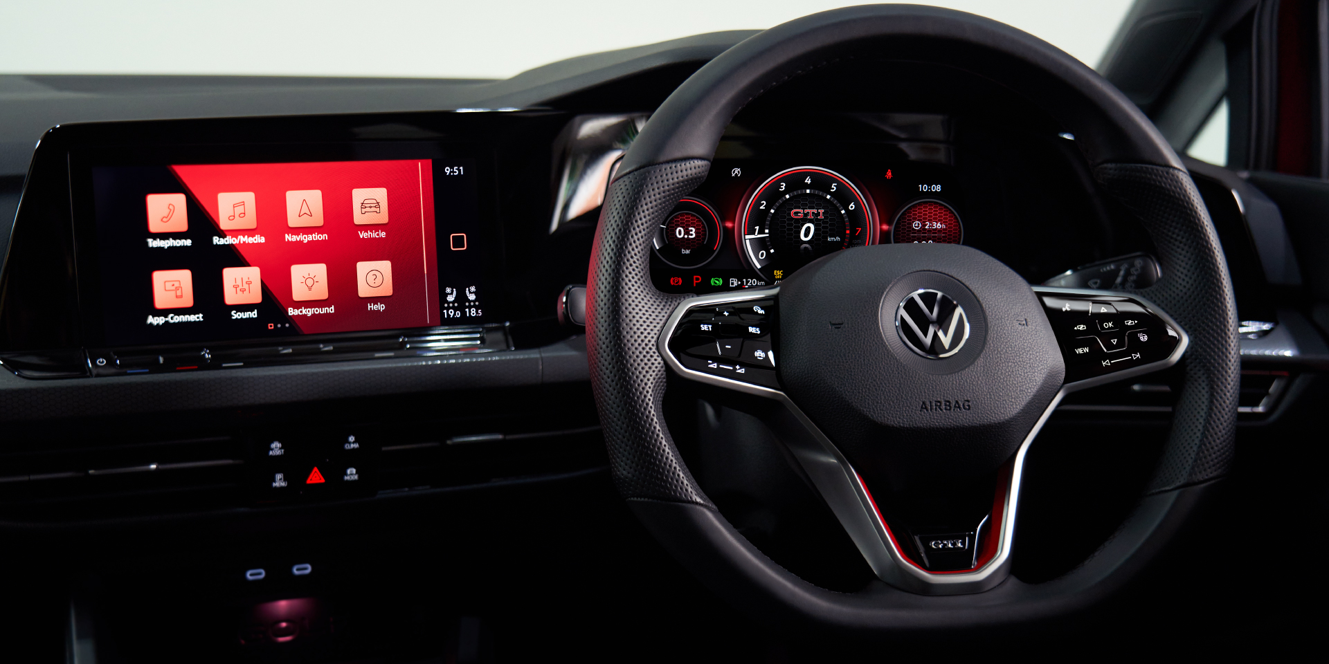 Model ini menampilkan gril depan sarang lebah (honeycomb) dan trim GTI merah yang sinonim dengan jenama itu. Bahagian roda dipasangkan rim aloi Richmond 18 inci, dengan kaliper brek merah, berserta lampu LED penuh.