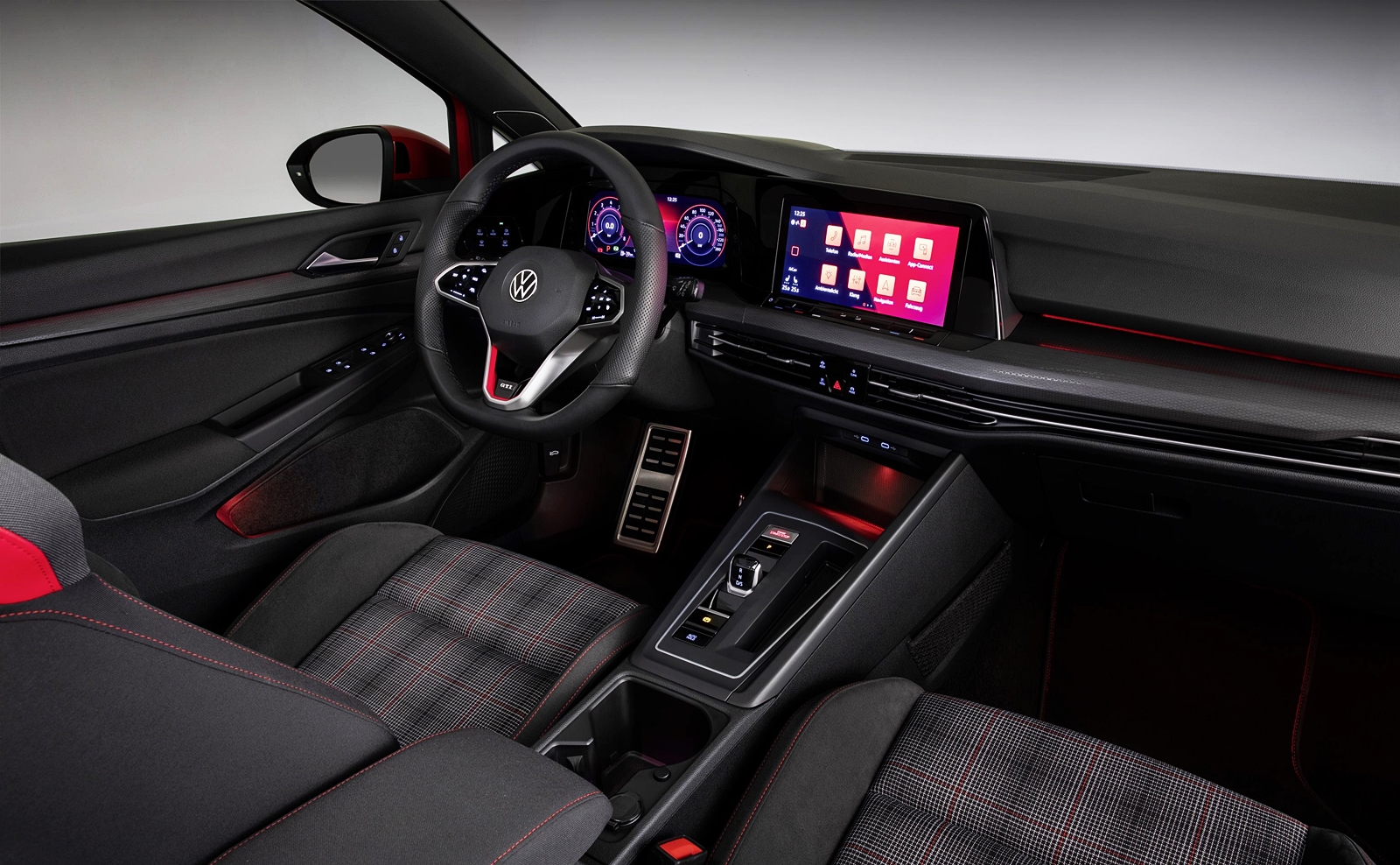 - Menampilkan Innovision Cockpit, iaitu skrin meter Digital Cockpit 10.25 inci dan sistem navigasi 10 inci. Juga mempunyai 30 warna latar dan opsyen khas untuk Golf GTI.