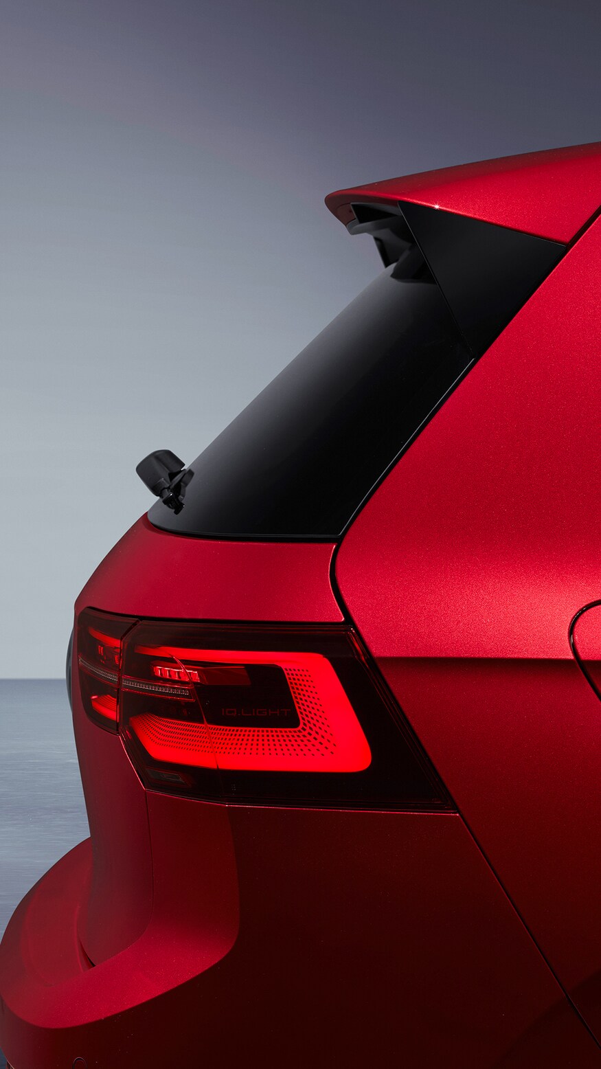 - Lampu utama LED diposisikan ke bawah dengan garisan horizontal dari gril merentasi lampu. Garis merah yang menjadi identiti Golf GTI diletakkan atas lampu dan gril.