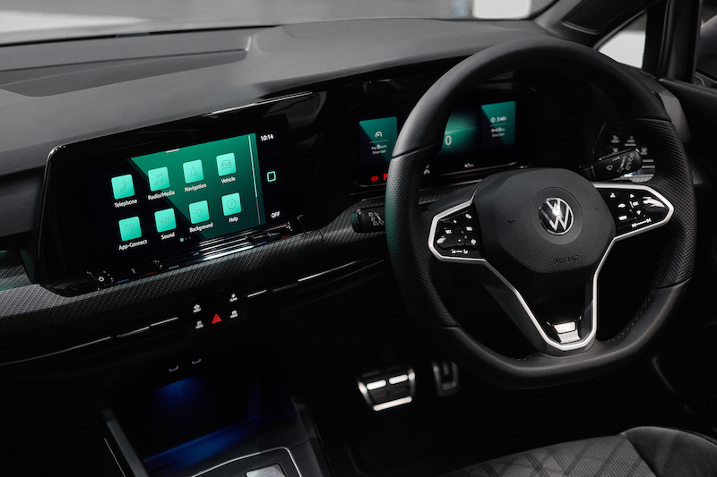 - Golf R-Line (2022) menampilkan kerusi depan sport yang dibalut material fabrik lembit Sardegna dan Art Velours, dengan sulaman lencana R-Line pada perehat kepala.