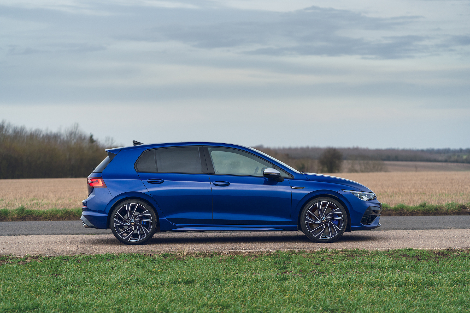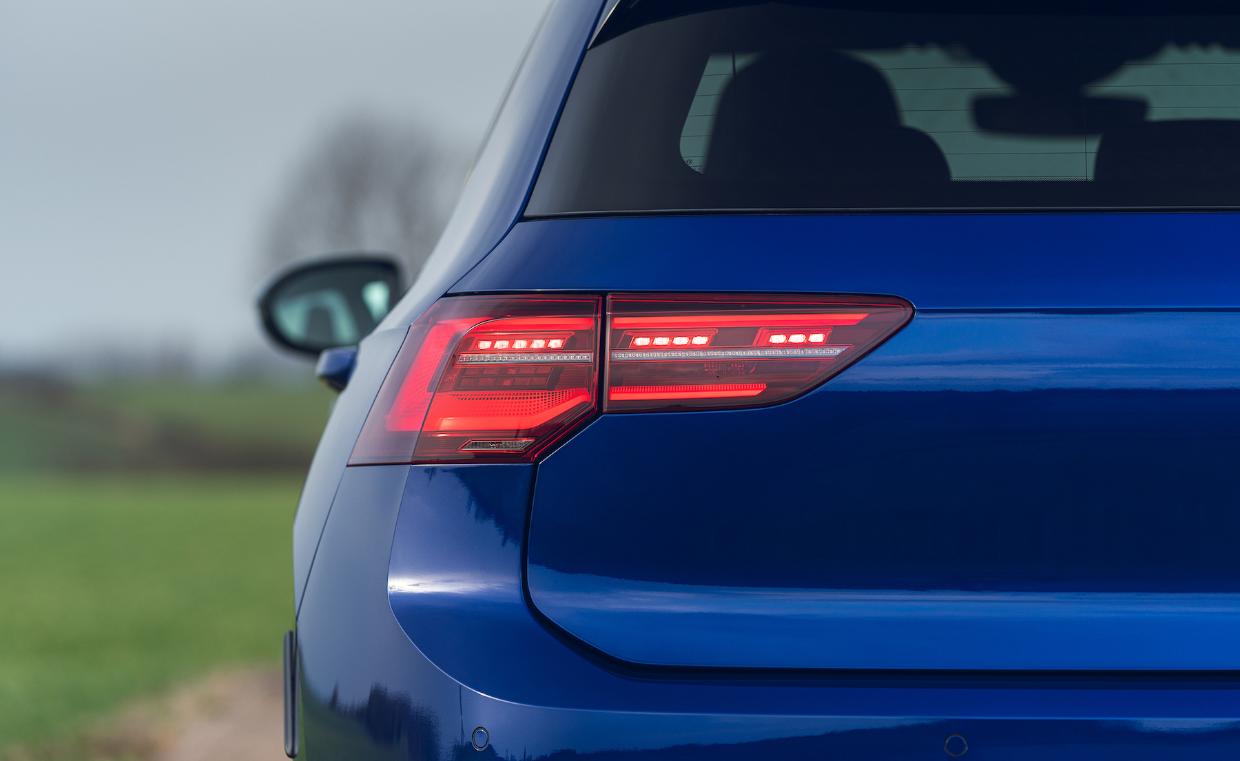 - Warna signatur biru Golf R jelas pada angkup brek, jalur biru pada ruang depan kereta, iluminasi jalur lampu dan pancaran logo R semasa pintu pemandu dibuka dan ditutup.