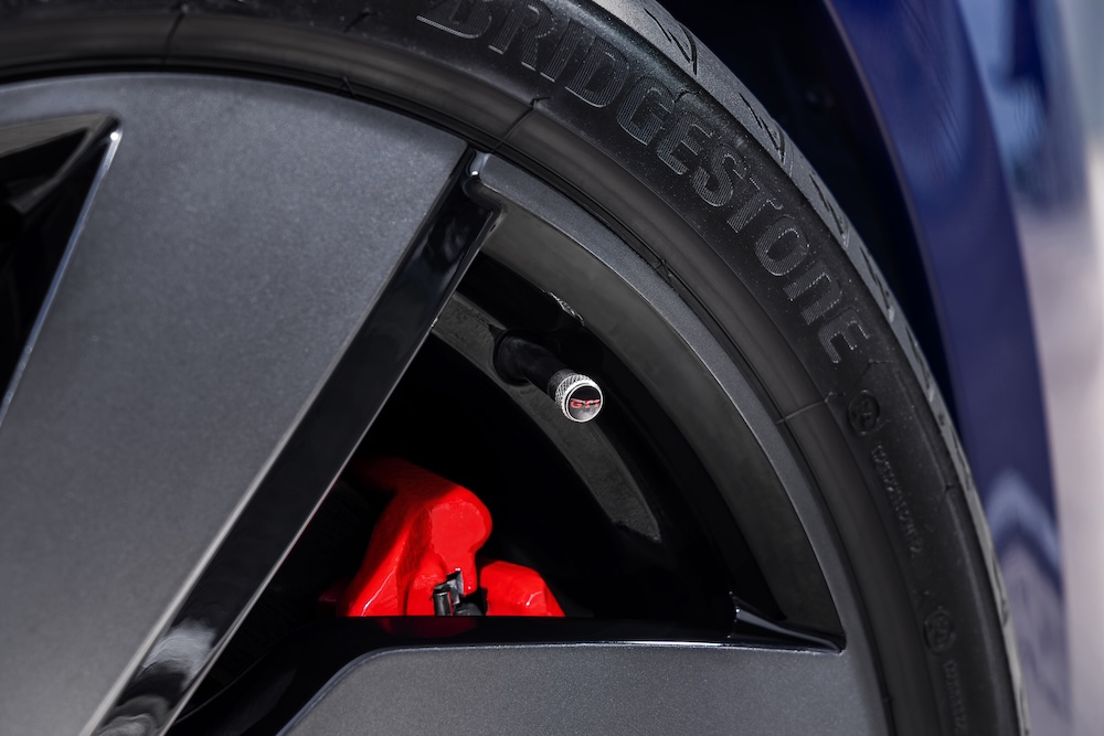 - Rim aloi ringan Richmond 18 inci warna kelabu matte dengan penutup hab roda dinamik “GTI”