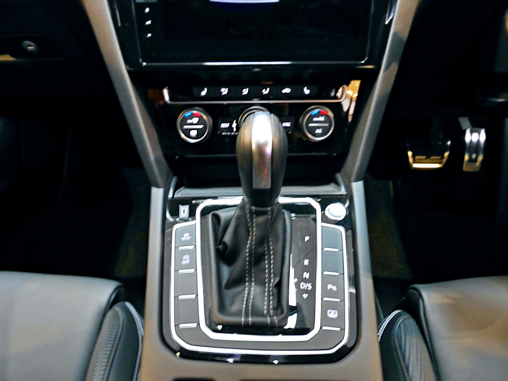 - Trim R-Line pada kabin dengan kemasan kulit Nappa hitam gaya karbon pada kerusi, stereng dan pedal sport aluminium