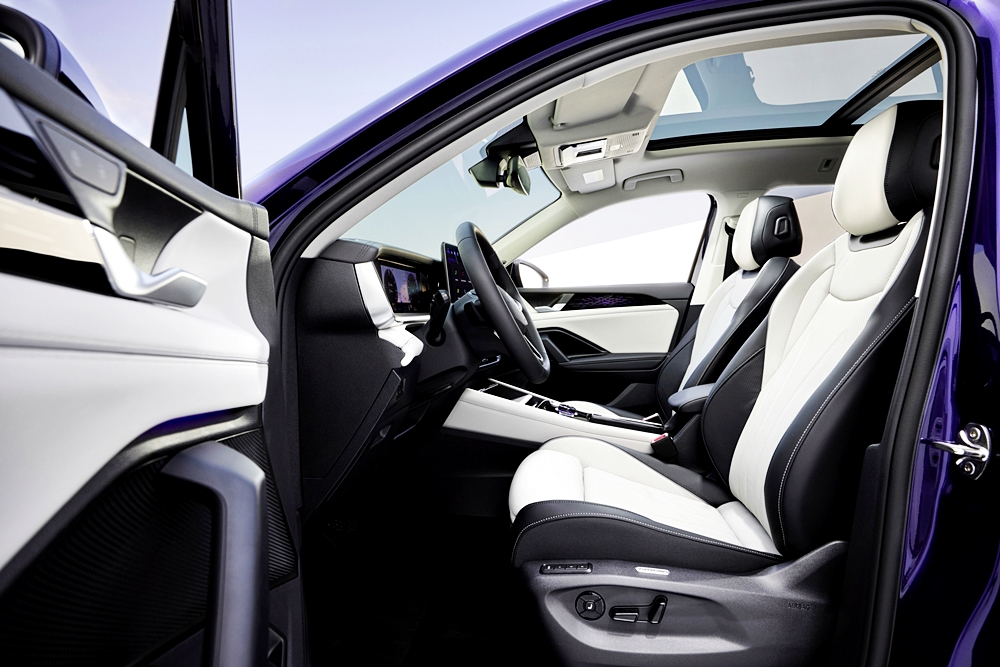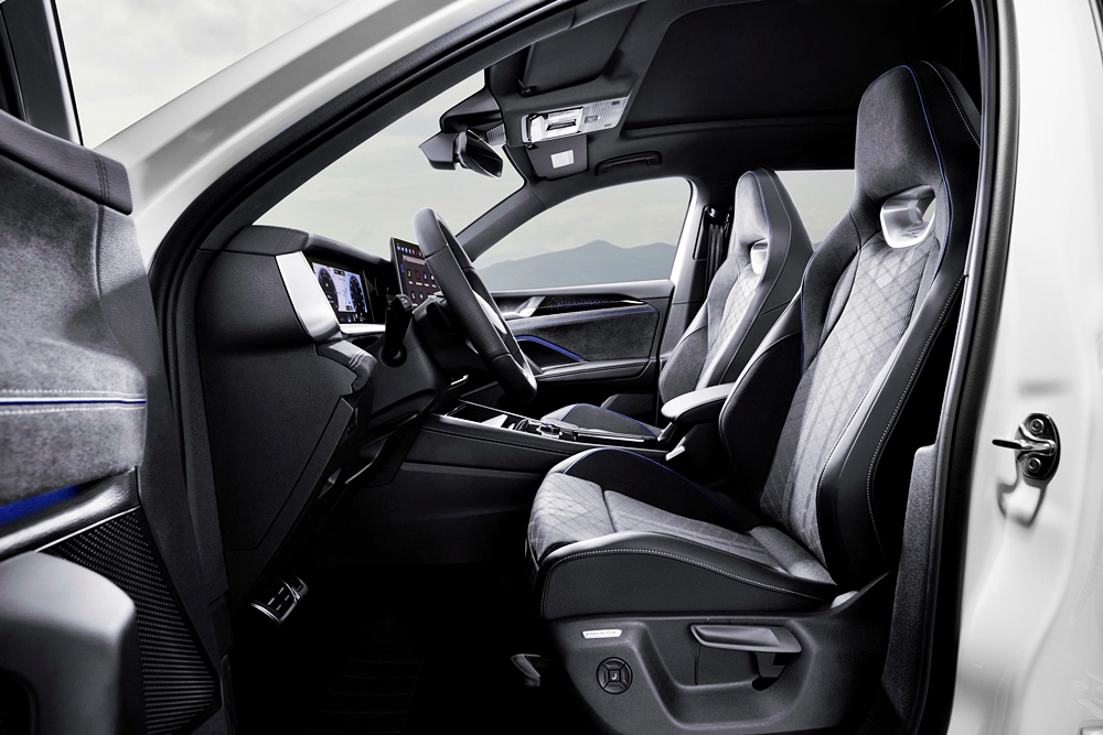 - Kerusi sport balutan ArtVelours Eco, balutan ArtVelours Eco pada panel papan pemuka dan pintu, trim gaya aluminium, bampar khas, rim 19 inci (Tayron R-Line).